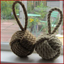 Our Monkey's Fist doorstops are made from Manila or Flax. The Manila doorstop has a weight inside it but the Flax one is heavy enough with just the weight of the rope.