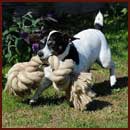 This is Jessie playing with her knotted rope toy. This one is a length of 32mm flax knotted at each end - smaller versions are available!