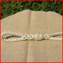 We use Flax to make our figure of eight tug toys. The tug toys are made by splicing a length of rope and covering the splice in the middle with a Turks Head knot using Hemp cord. A tug toy made in 18mm Flax is approximately 45cm long.