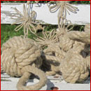 Monkey's Fist knots make great toys for dogs. We make them in two sizes and two types of rope: Flax and Manila.