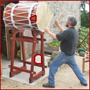 This craftsman makes drums in the Western Isles of Scotland. He’s shown here playing a Japanese war drum. He used 14mm cotton for the ropes.